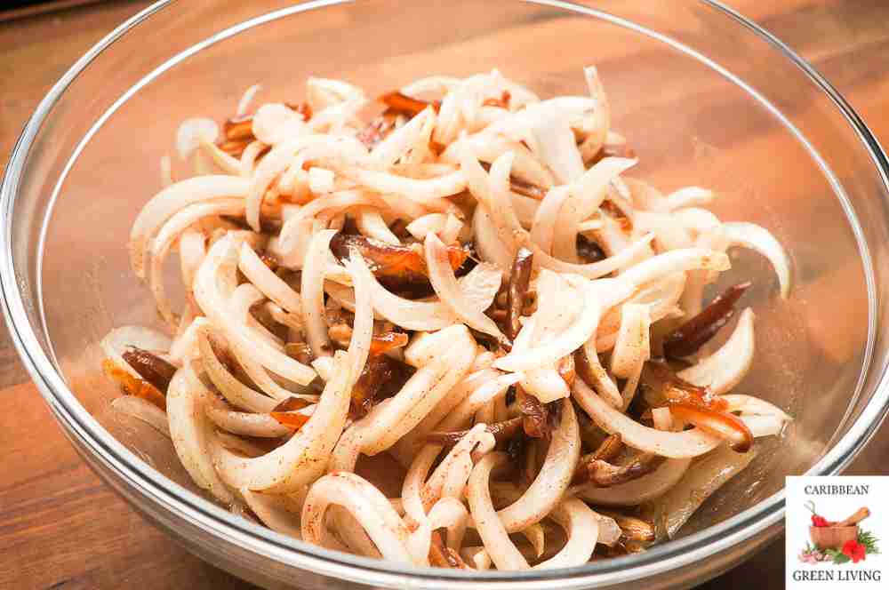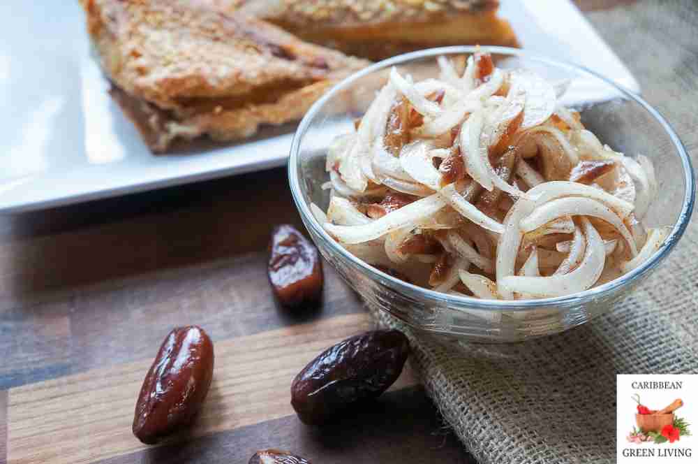 - Place in a large bowl and set aside. Remove the seed in the dates if any. Slice the dates and add them to the sliced onion.